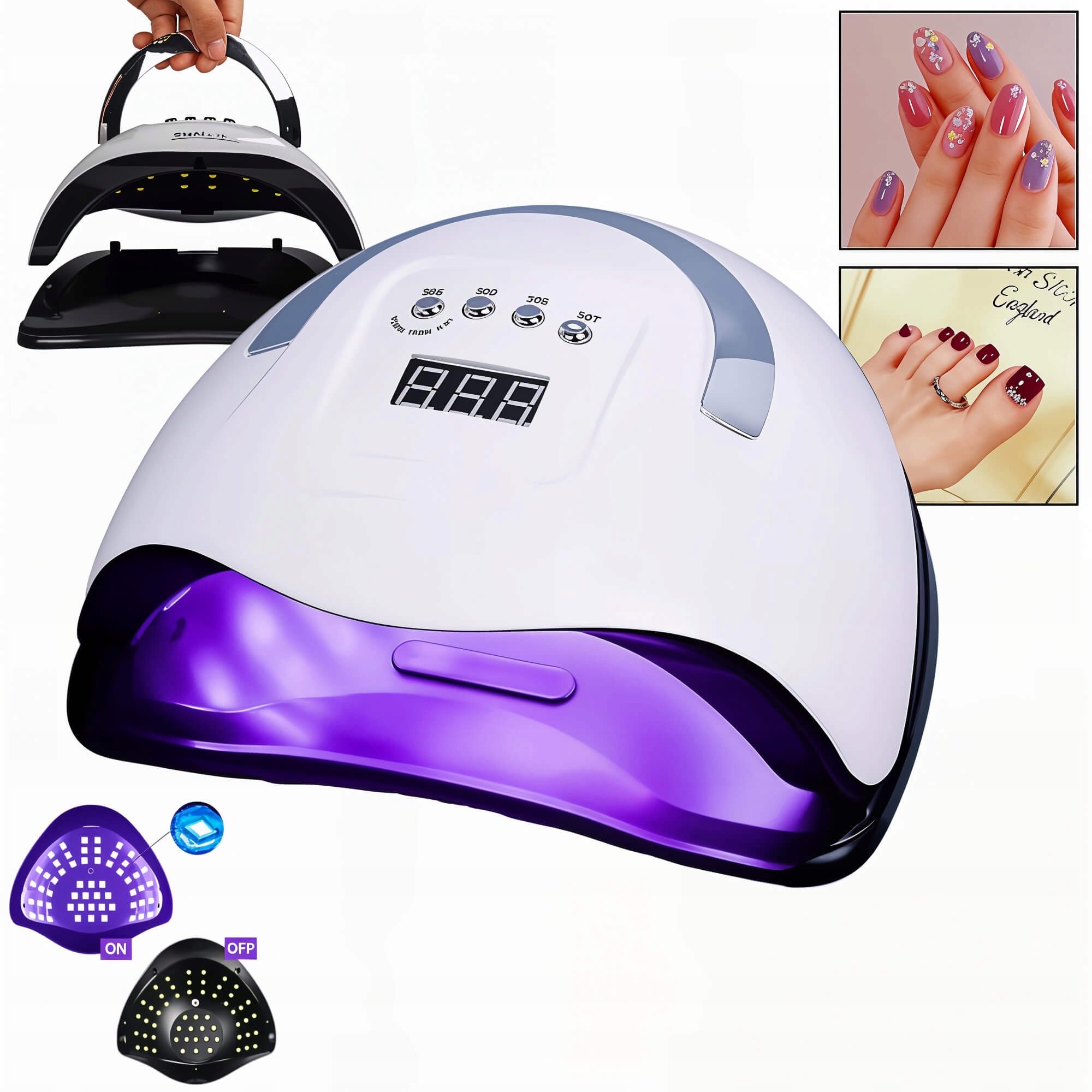 1⃣ Впечатляющая мощность 220 Вт: 57 светодиодов обеспечивают равномерное и глубокое отверждение материалов, сокращая время процедуры до минимума. Светлый - идеально подходит для профессионалов и любителей.