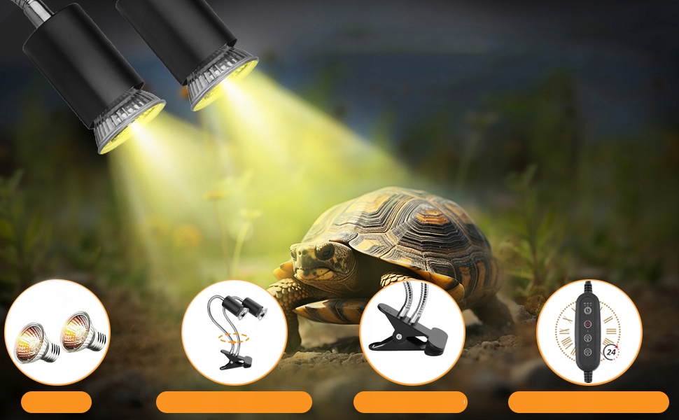 Лампа для загара черепах подходит для большинства рептилий, черепах, ящериц, змей, пауков, птиц и амфибий. Он также может работать с обычными лампами E27 для освещения комнатных растений, художественных студий, спален и т. д.