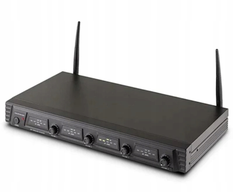 - 4-канальный беспроводной микрофонный комплект УВЧ с двумя динамическими ручными микрофонами и двумя микрофонами-гарнитурами с радиусом действия до 50 м.