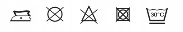 - Инструкции по уходу: деликатная стирка 30°C, хлорирование невозможно, сушка в барабане запрещена, глажка: I точка, химчистка невозможна. ul>