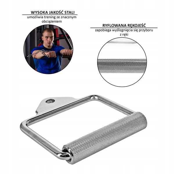 UW03 HMS — это одинарная рукоятка, предназначенная для тренировок на верхнем или нижнем блоке. Его можно использовать для целого ряда упражнений для различных групп мышц верхней части тела, начиная от небольших групп, таких как бицепс и трицепс, через дельтоиды, до спины и груди. Грубая стальная ручка предотвращает выскальзывание инструмента из рук, требуя при этом более крепкого хвата. Благодаря этому мы также работаем над развитием мышц предплечий. Изготовлен из высококачественной стали, позволяет тренироваться со значительными нагрузками. Вращающаяся ручка, установленная в модели UW03, позволяет быстрее и эффективнее тренировать те группы мышц, которые не удается охватить классической ручкой. Модель UW03 HMS поможет вам легко и главное симметрично расширить мышцы. Предназначен для верхнего и нижнего подъема.