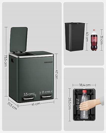 - ОТКРЫТИЕ В ОДИН ШАГ: педальная корзина оснащена педалями, которые делают ее открытие легким и гигиеничным. Он также имеет 2 внутренних контейнера, в которые вы можете сбрасывать отходы отдельно для каждого материала - это упрощает вывоз и сортировку мусора!
