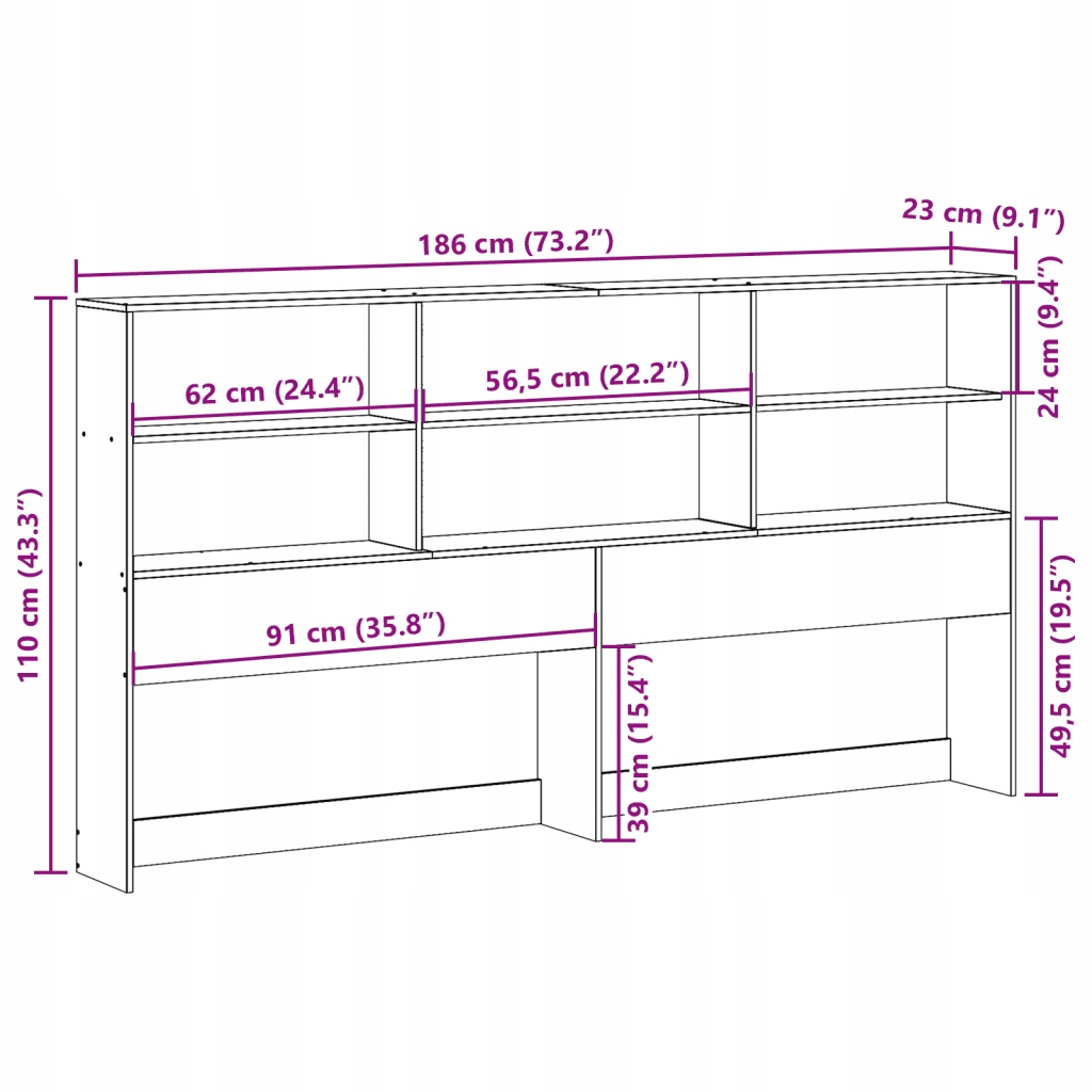 Изголовье на постель, с полками, восковая бронза, 180 см, сосна