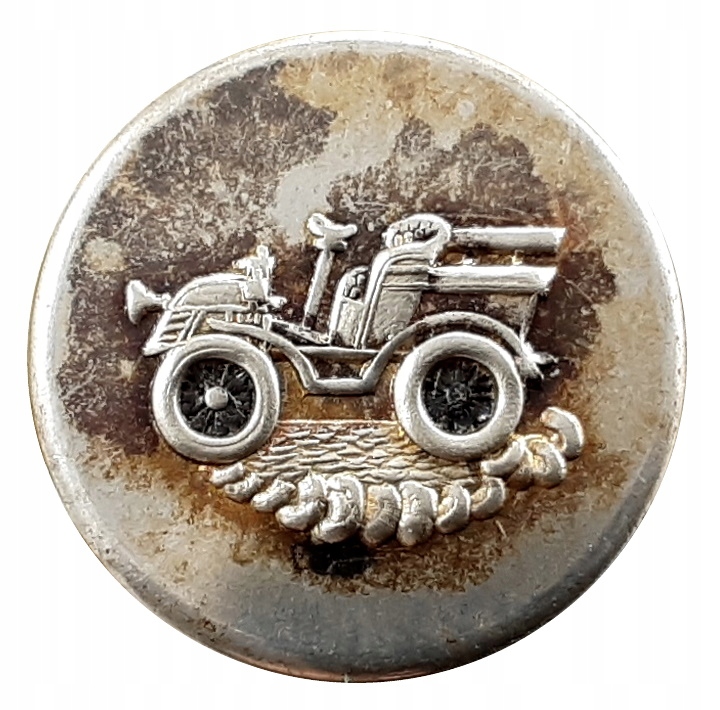 Пуговица на униформу шофера, двухслойная, с обратной стороны подпись производителя, полностью посеребренная.