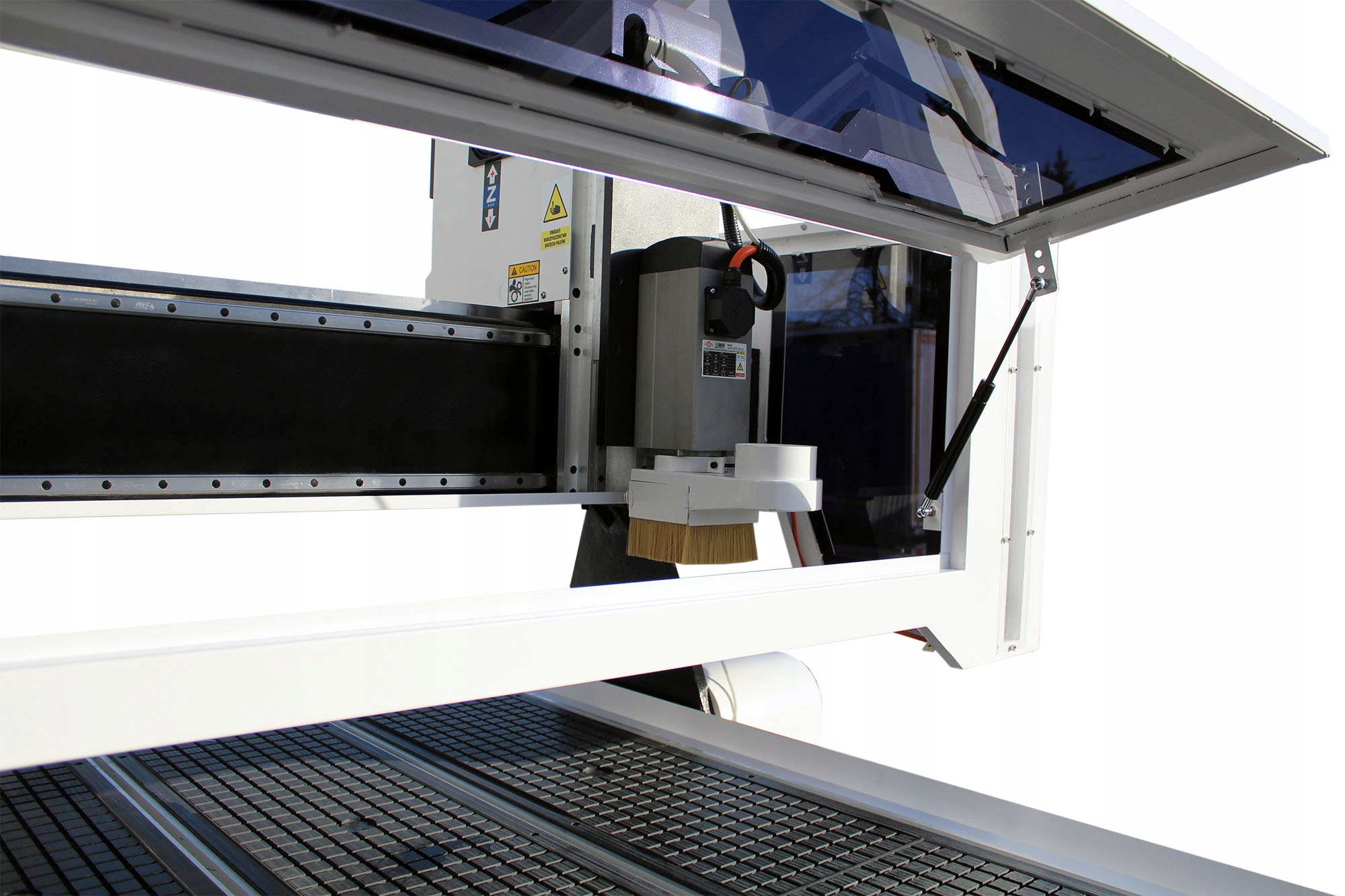 Профессиональный, промышленный фрезерный станок с ЧПУ мод. 1325 INDUSTRY с рабочим столом размером 130x250 см, оснащенным сверхэффективным электрошпинделем мощностью 6 кВт с полностью керамическими подшипниками. Высота оси Z составляет 300 мм.