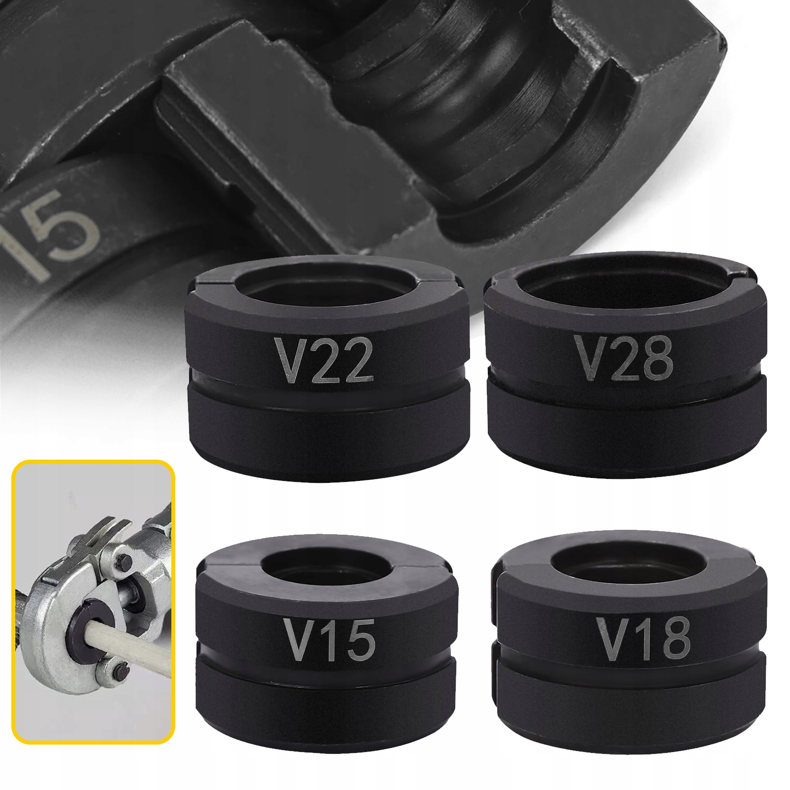 V-образные соединители для обжимного станка для труб диаметром 15–28 мм.