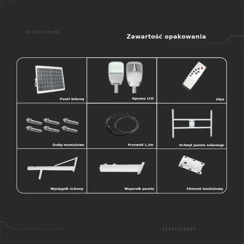 V-TAC SAMSUNG ЧІП Світлодіодний сонячний вуличний ліхтар 50 Вт білий IP65 LiFePo4 VT-ST3