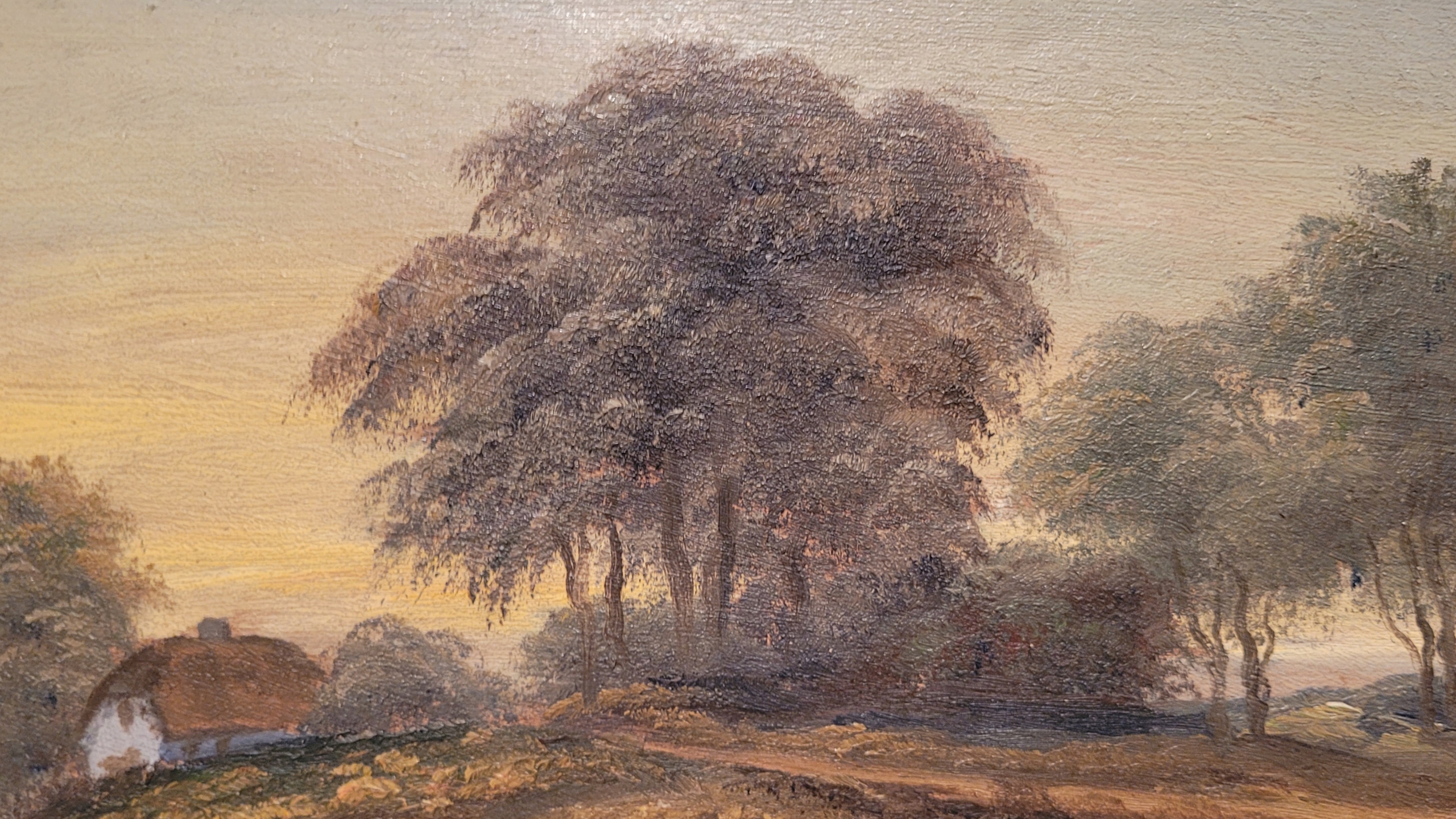 Предмет продажи - красивая, старинная картина маслом "ПЕЙЗАЖ С ДОМОМ".