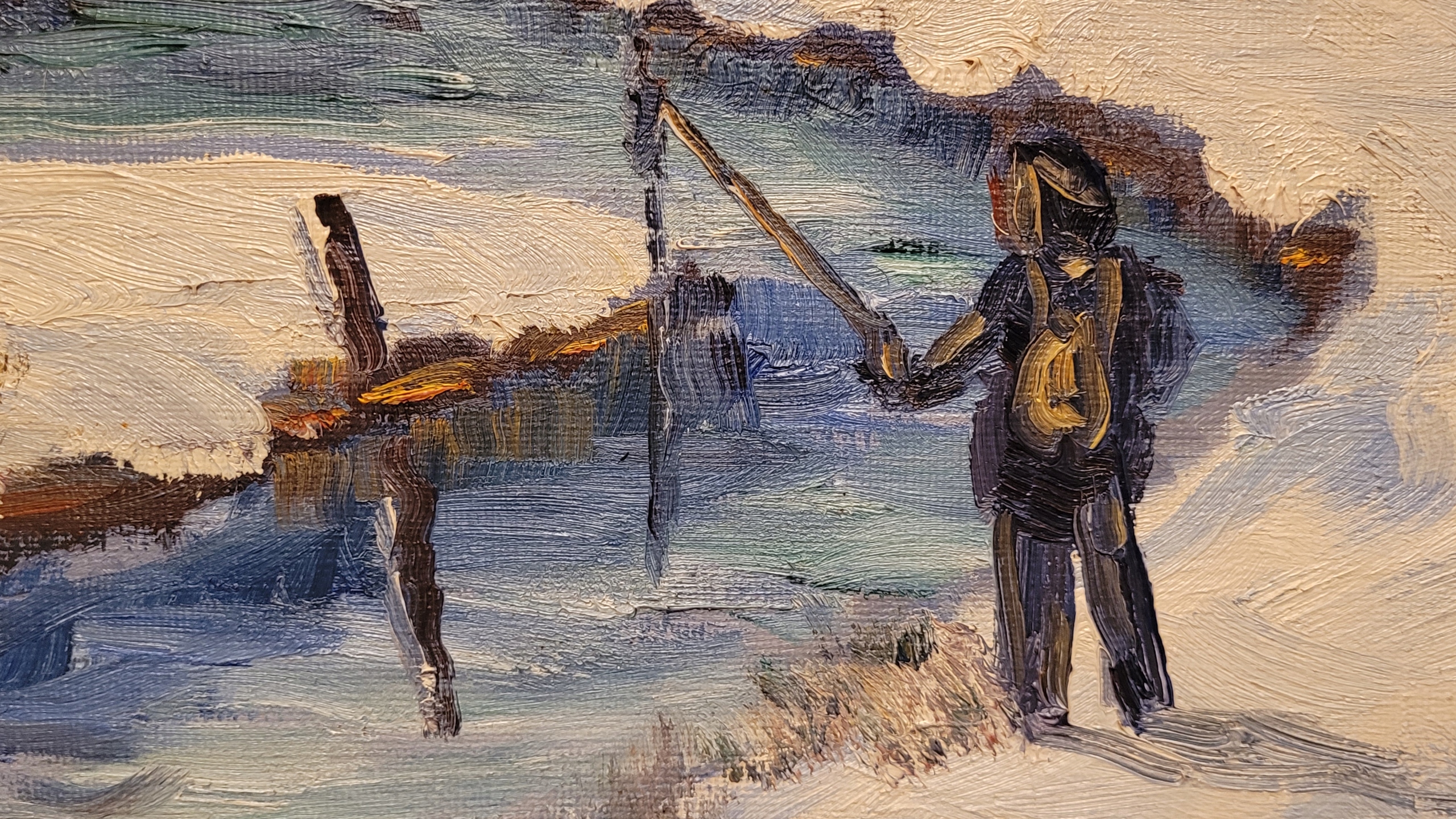 В.МИККЕЛЬСЕН - "РЫБАЛКА ЗИМОЙ", красивая картина маслом.