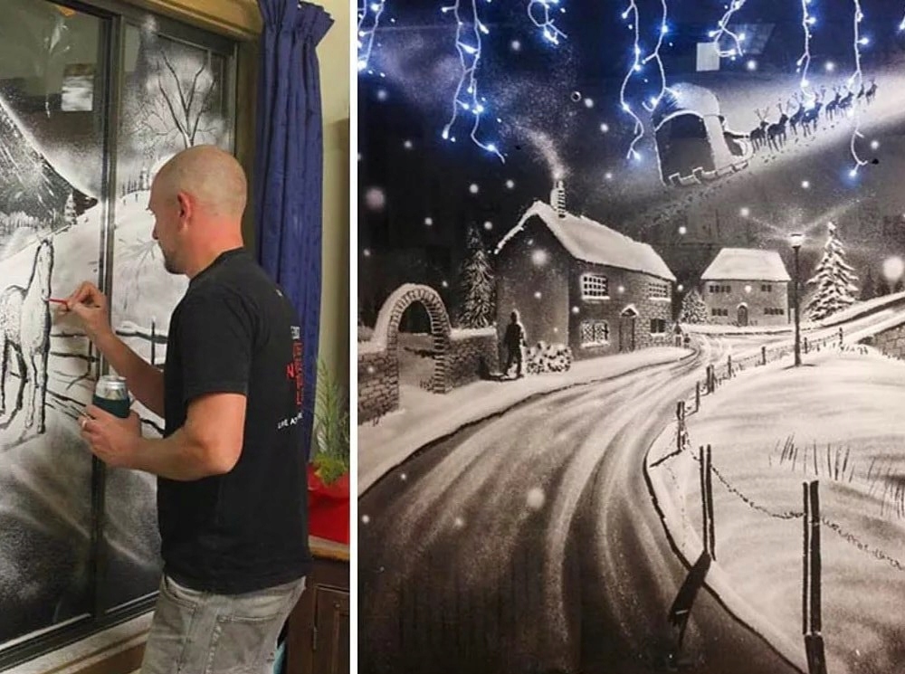 Искусственный снег чрезвычайно эффектно смотрится на окнах, витринах и других стеклянных поверхностях.