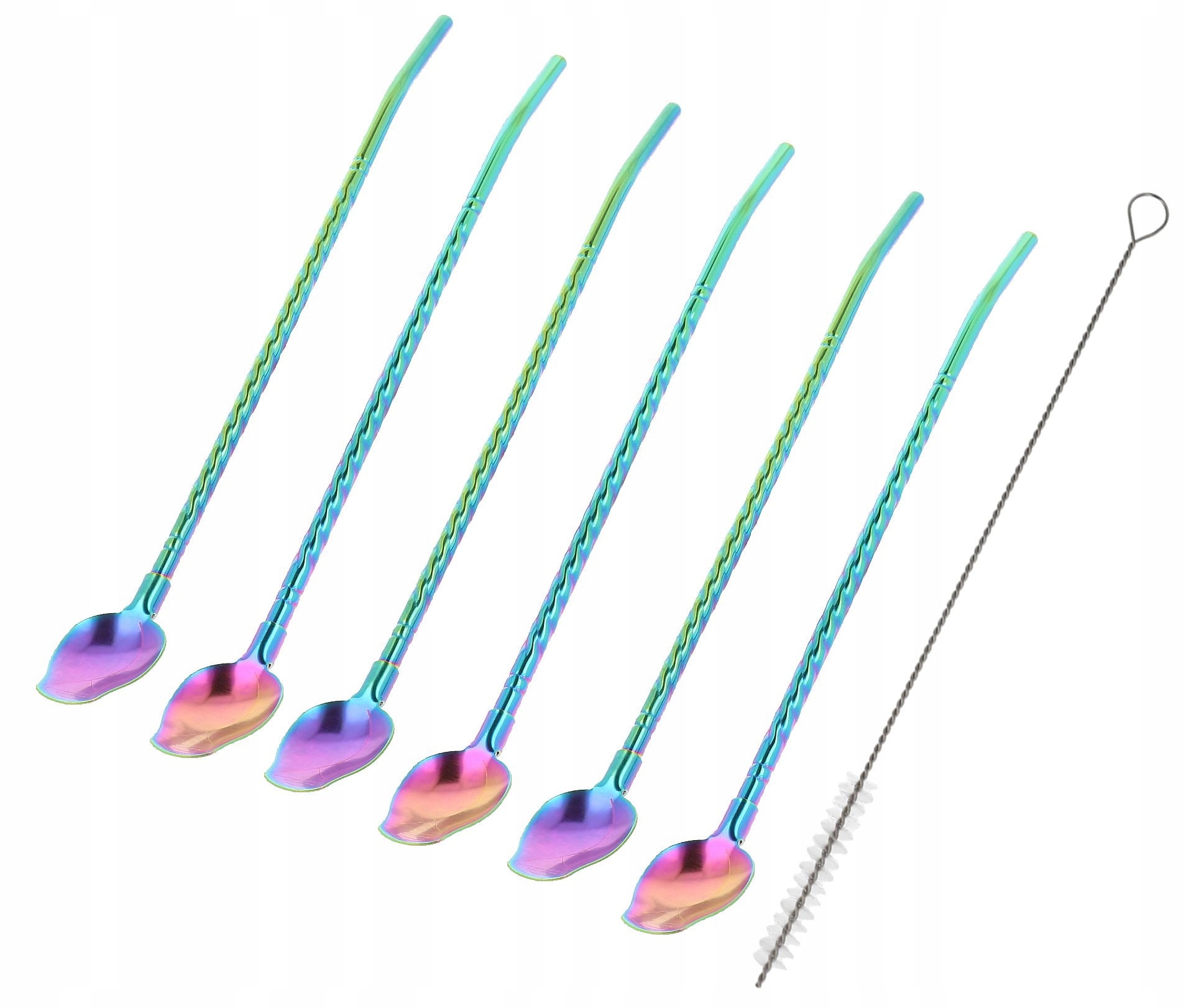 V5 2в1 МЕТАЛЛИЧЕСКАЯ ЛОЖКА-СОЛОМКА, ДЛИННАЯ ДЛЯ ДЕСЕРТОВ, НАПИТКОВ, 6 шт + ОЧИСТИТЕЛЬ