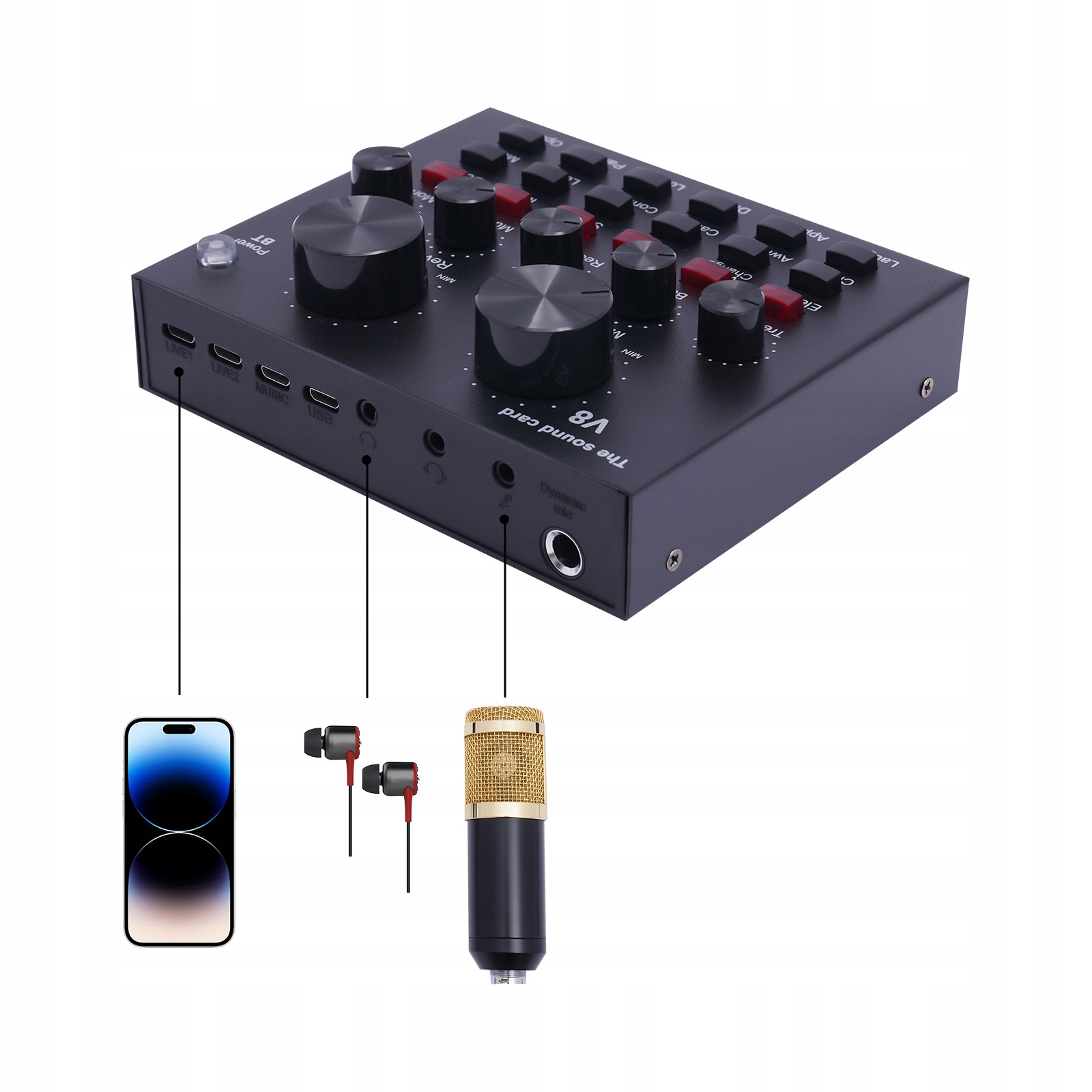 V8 Sound Card Live Interface Audio Mixer Changer для живой трансляции