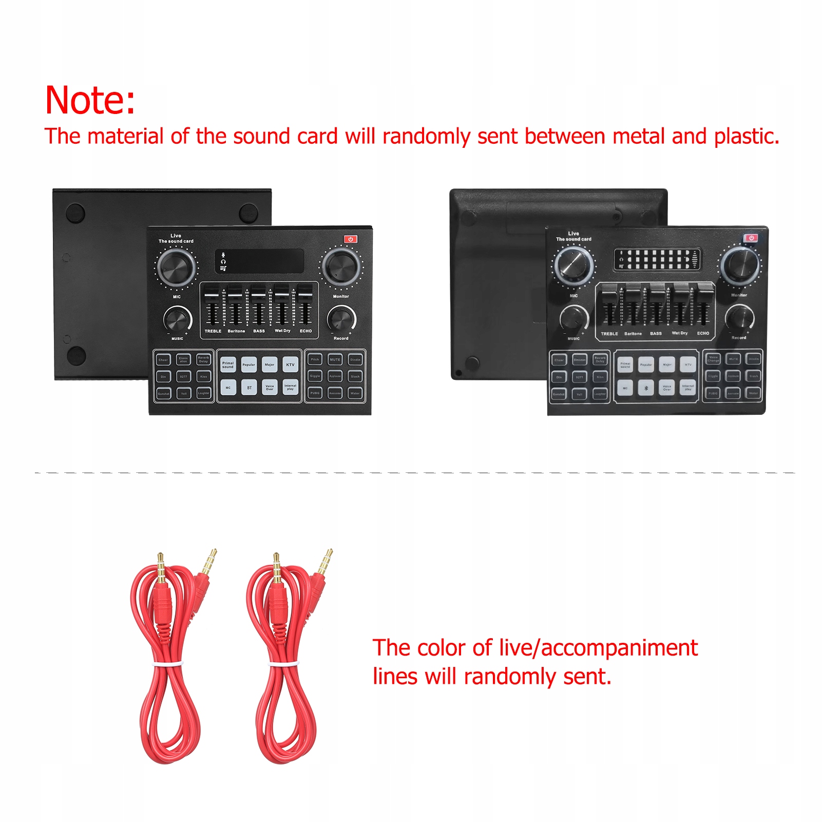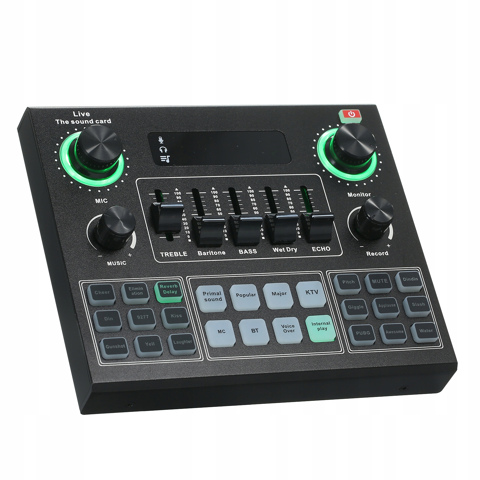 - Внешняя живая звуковая карта представляет собой набор функций записи, караоке, живых выступлений и совместной работы с компьютерами, воспроизведения звука и других функций. Содержит 12 живых эффектов, 12 эффектов электронной музыки, 14 предустановленных звуковых эффектов, поддерживает устранение исходного звука, мужского голоса, женского голоса, детского голоса и различных голосов.