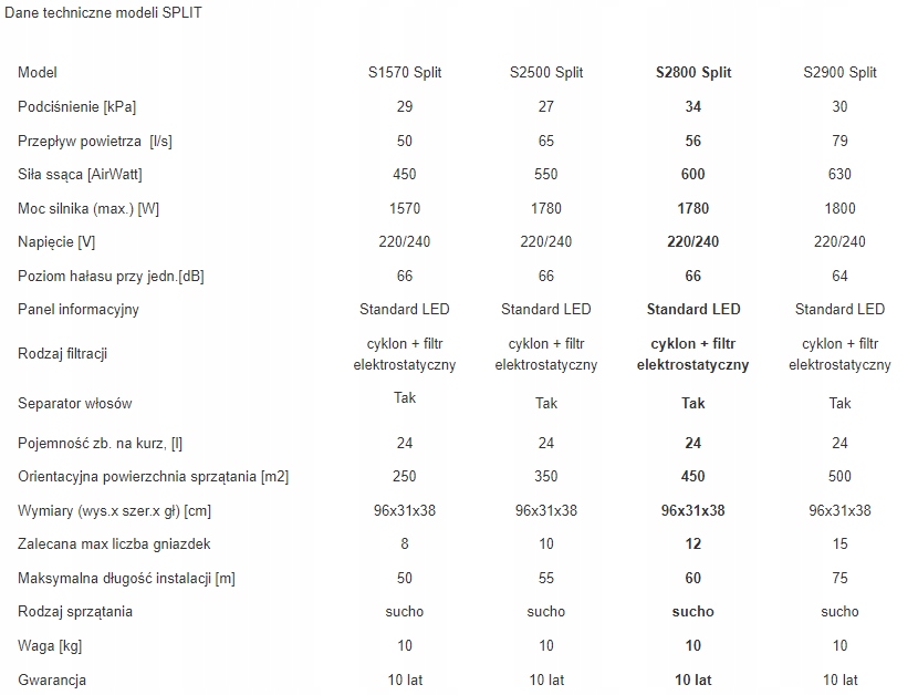 Центральные блоки S2800 Split имеют ГАРАНТИЮ 10 ЛЕТ - оснащены одним двигателем с диаметром ротора 5,7" или 7,2" соответственно. Пылесосы предназначены для домашнего использования, конструкция из которых заимствованы из распространенных решений в промышленных структурах. Эти пылесосы способны убирать дома общей площадью 300 м2 и 500 м2 соответственно. Двигатели ЦП типа S1570 можно подключать параллельно с одним сепаратором DC1240 для увеличения потока воздуха. Это решение обеспечивает очень высокую производительность системы по привлекательной цене.