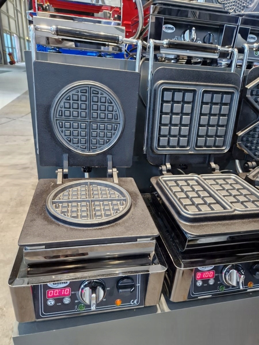 Профессиональная вафельница GMG для предприятий общественного питания. Пластины изготовлены из высококачественного чугуна, обеспечивающего длительное использование. Прочная конструкция из нержавеющей стали обеспечивает устойчивость к коррозии.