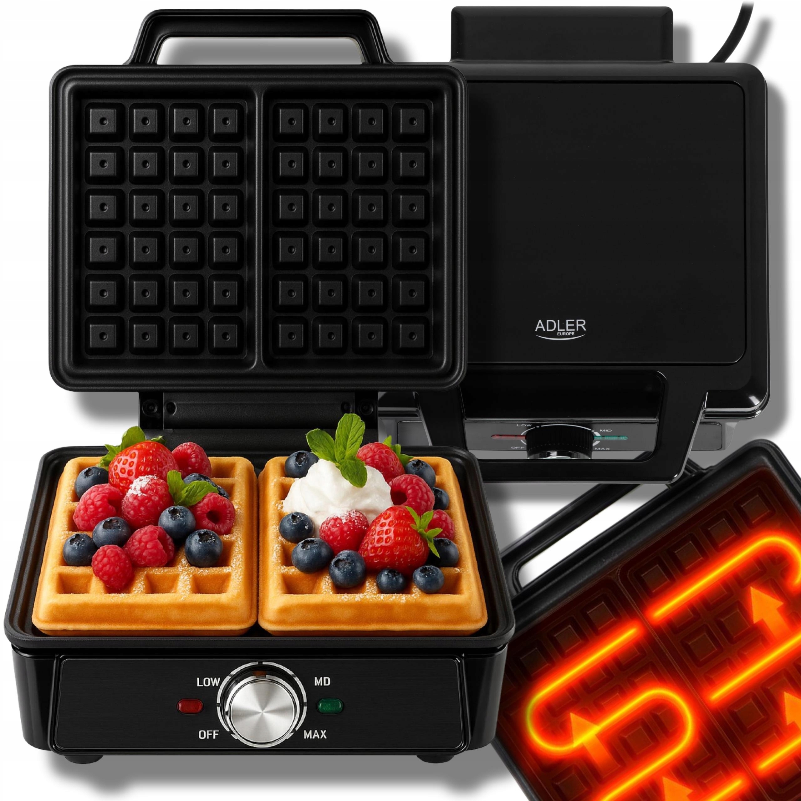 Вафельниця Adler Europe Gofrownica 2000W 3056 2000 Вт чорна