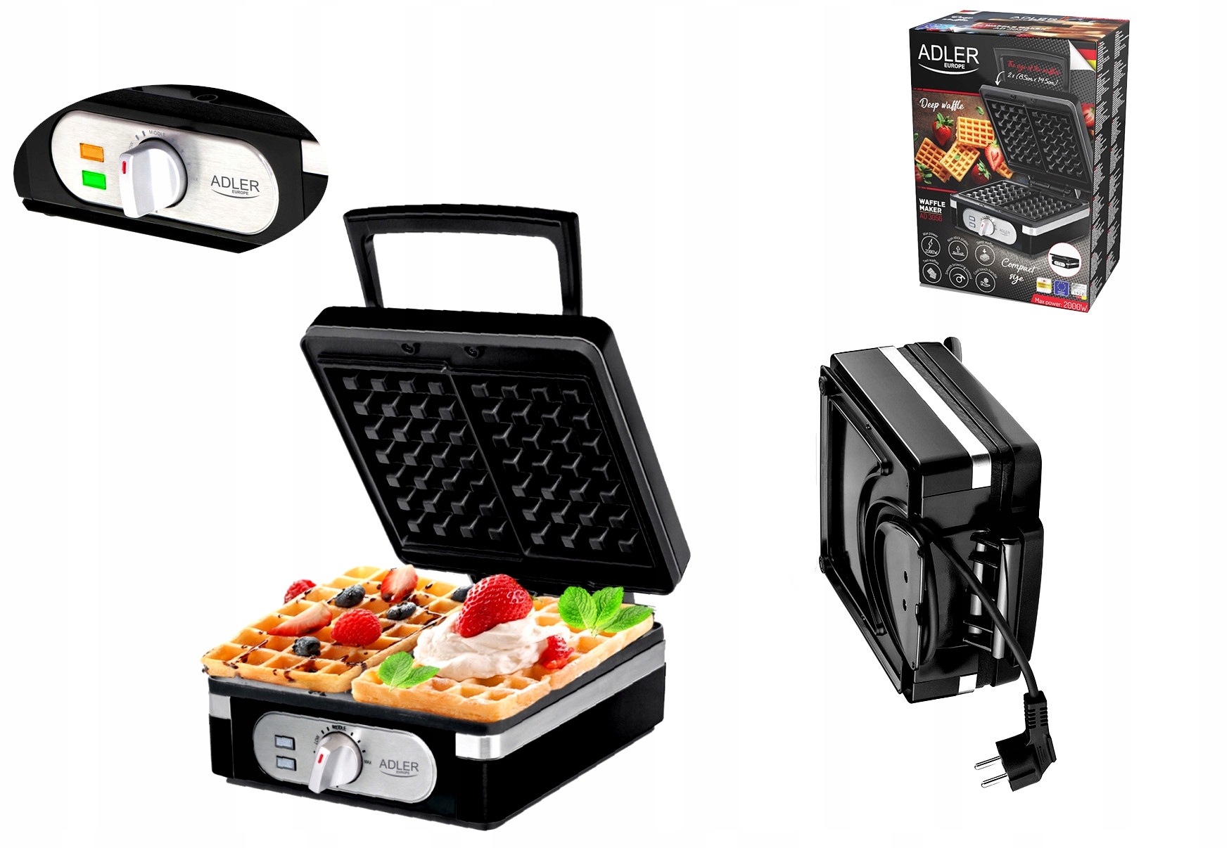 Вафельница Adler 2000Вт | 2 большие вафли