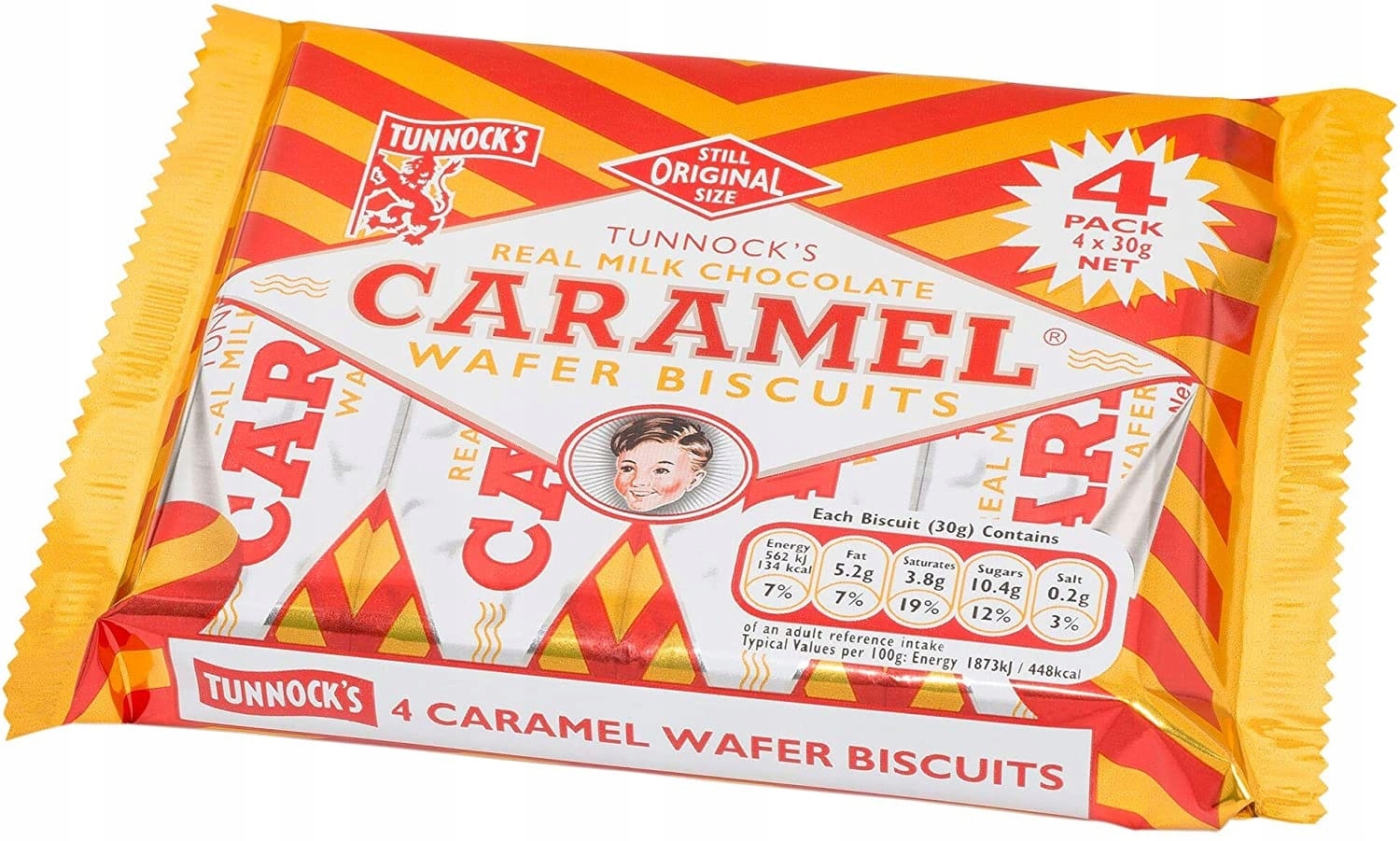 Карамельно-вафельное печенье «Tunnocks». В упаковке вы получаете 4 классических печенья со вкусом карамели и шоколада от Tunnocks. Хрустящая вафельная основа с карамельной серединкой, покрытая молочным шоколадом.