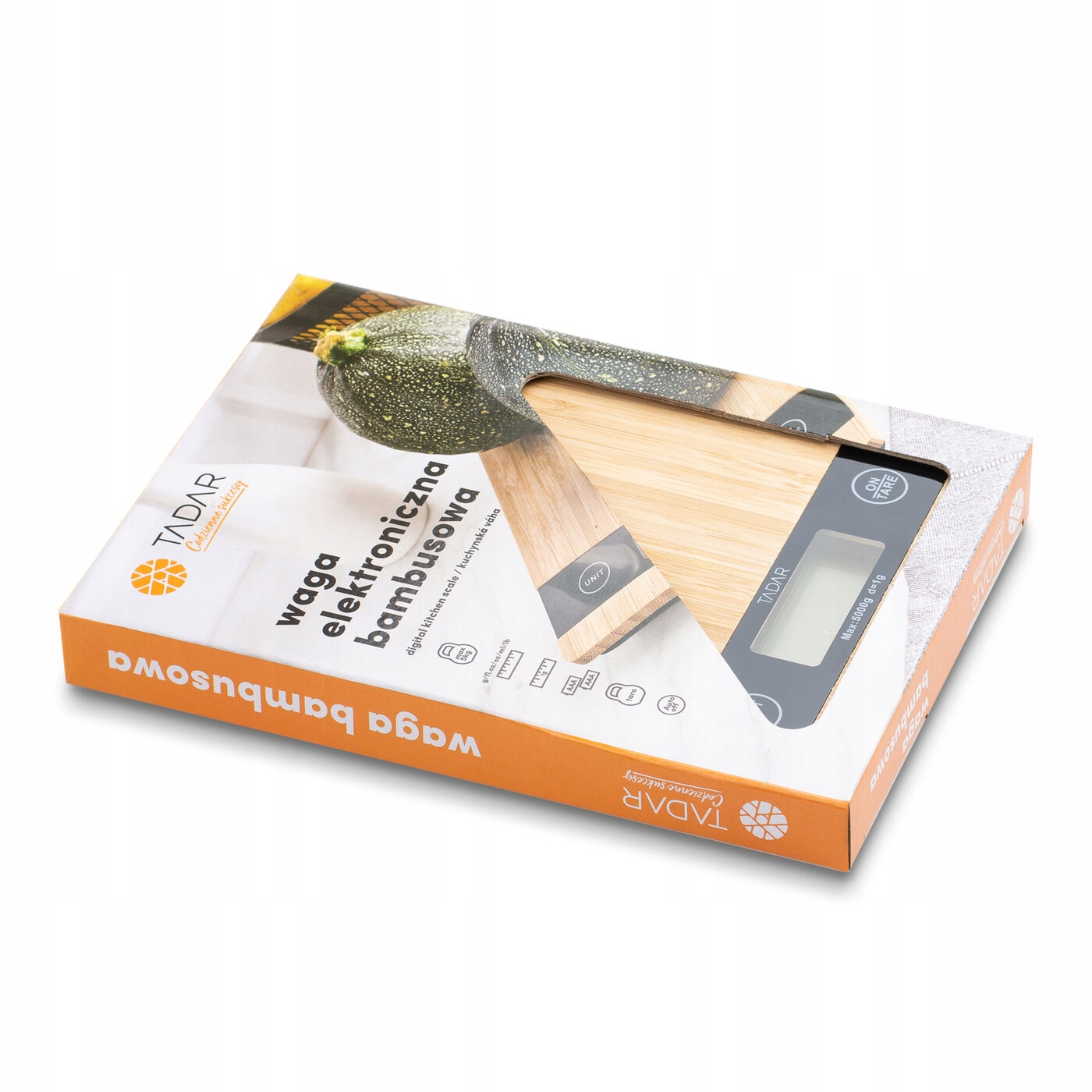 Электронные кухонные весы Tadar Bambus на 5 кг имеют простую и правильную форму. Это решение облегчает взвешивание овощей и фруктов. Вы сделаете это до грамма. Модель также позволяет производить измерения в миллилитрах, унциях и фунтах. Кроме того, он имеет функцию тарирования и индикатор перегрузки. Вся информация отображается на четком ЖК-дисплее. В комплект входят батарейки, необходимые для питания изделия. Модель будет полезна при приготовлении пищи или выпечке. Это также удобно, гарантирует устойчивое положение на столешнице и не создаст проблем при хранении. Поверхность весов отделана натуральным бамбуковым деревом, поэтому они выглядят так элегантно.