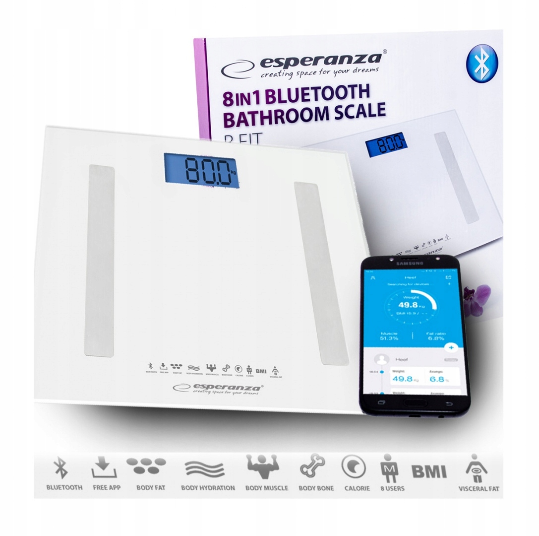 В наших диагностических весах Esperanza '8in1' B.FIT используется инновационная технология BIA (биоэлектрический импедансный анализ) для измерения компонентов состава тела. Быстро после измерения вы получите информацию обо всех необходимых параметрах для облегчения контроля вашего здоровья.