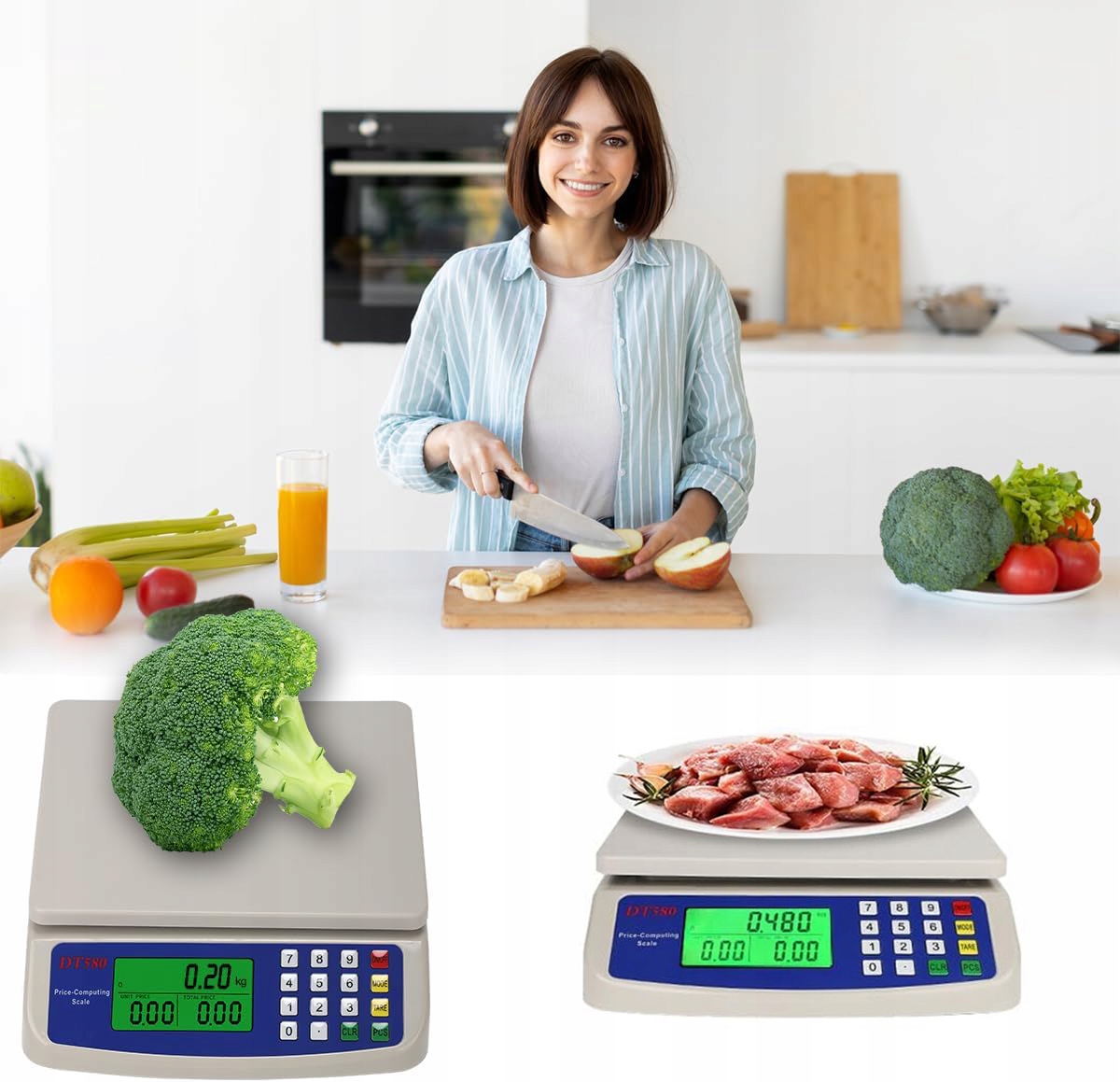 Прецизионные электронные кухонные весы: В этих кухонных весах используются четыре прецизионных датчика. Обладая грузоподъемностью 30 кг и делением 1 грамм, он позволяет взвешивать муку, сахар, фрукты и другие продукты, точно контролируя порции и обеспечивая идеальное приготовление.