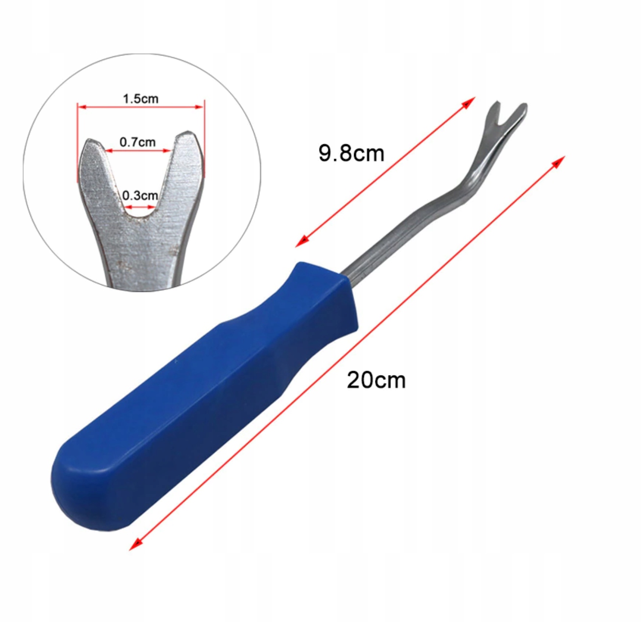 В комплект входят 11 различных лопаток для снятия обивки, которые позволяют точно и бережно удалять булавки и другую обивку. элементы. Дополнительно в комплект входит металлическая открывашка с вилкой, работающая по принципу рычага, что облегчает снятие обивочных фиксаторов.