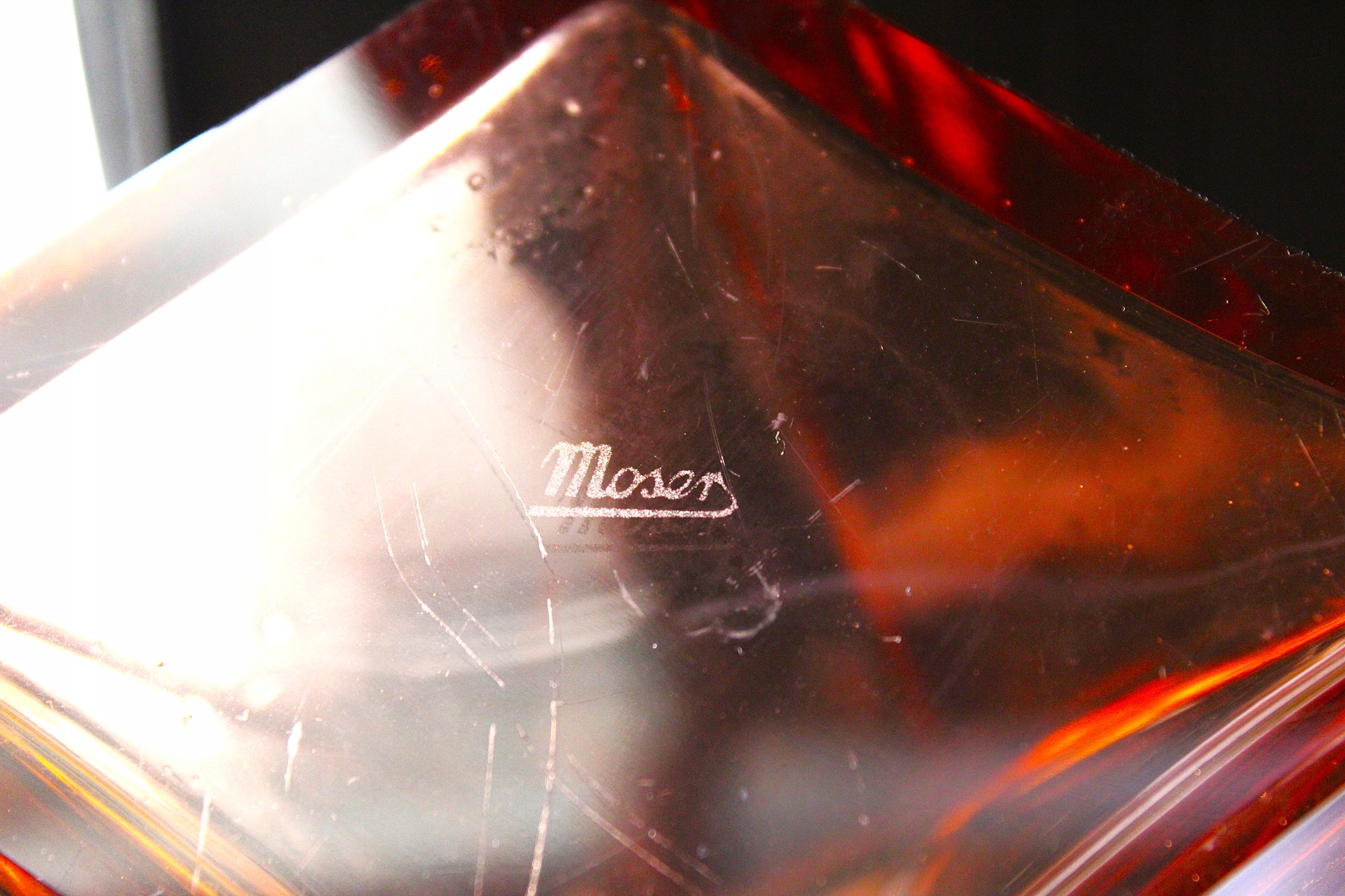 я рекомендую старый тяжелый хрустальный графин, который положил руку на карафе, фирменную надпись Moser 100 % оригинал, сделанный в стеклянных заводах L. Moser / Karlovy Wara - Czechoslovaki Середина деликатного ила после спирта до небольшой очистки