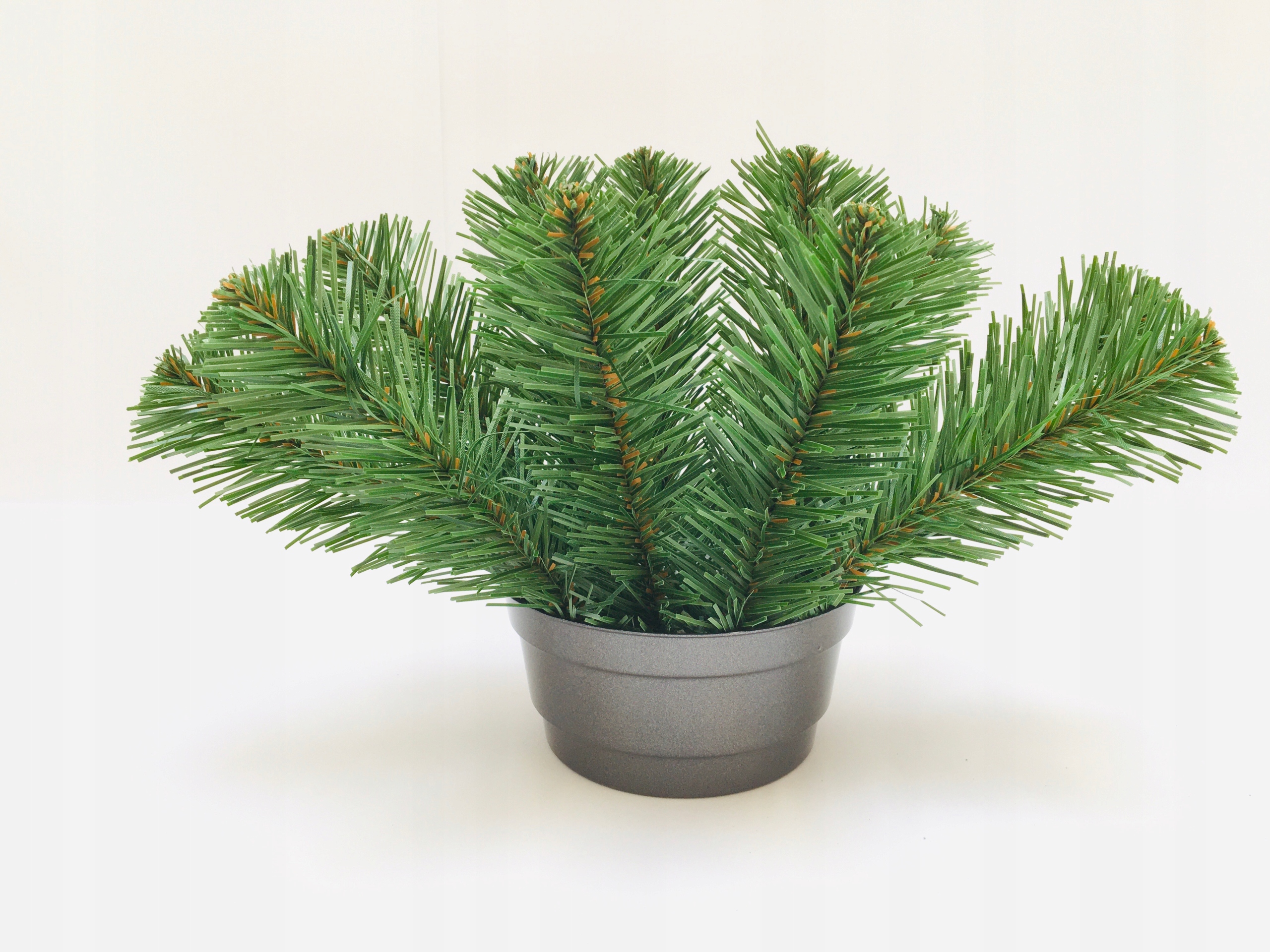 Искусственное основание - горшок, залитый бетоном, помещен пенопластовый кубик. Зеленые хвойные веточки, из ПВХ-пленки, польский продукт.