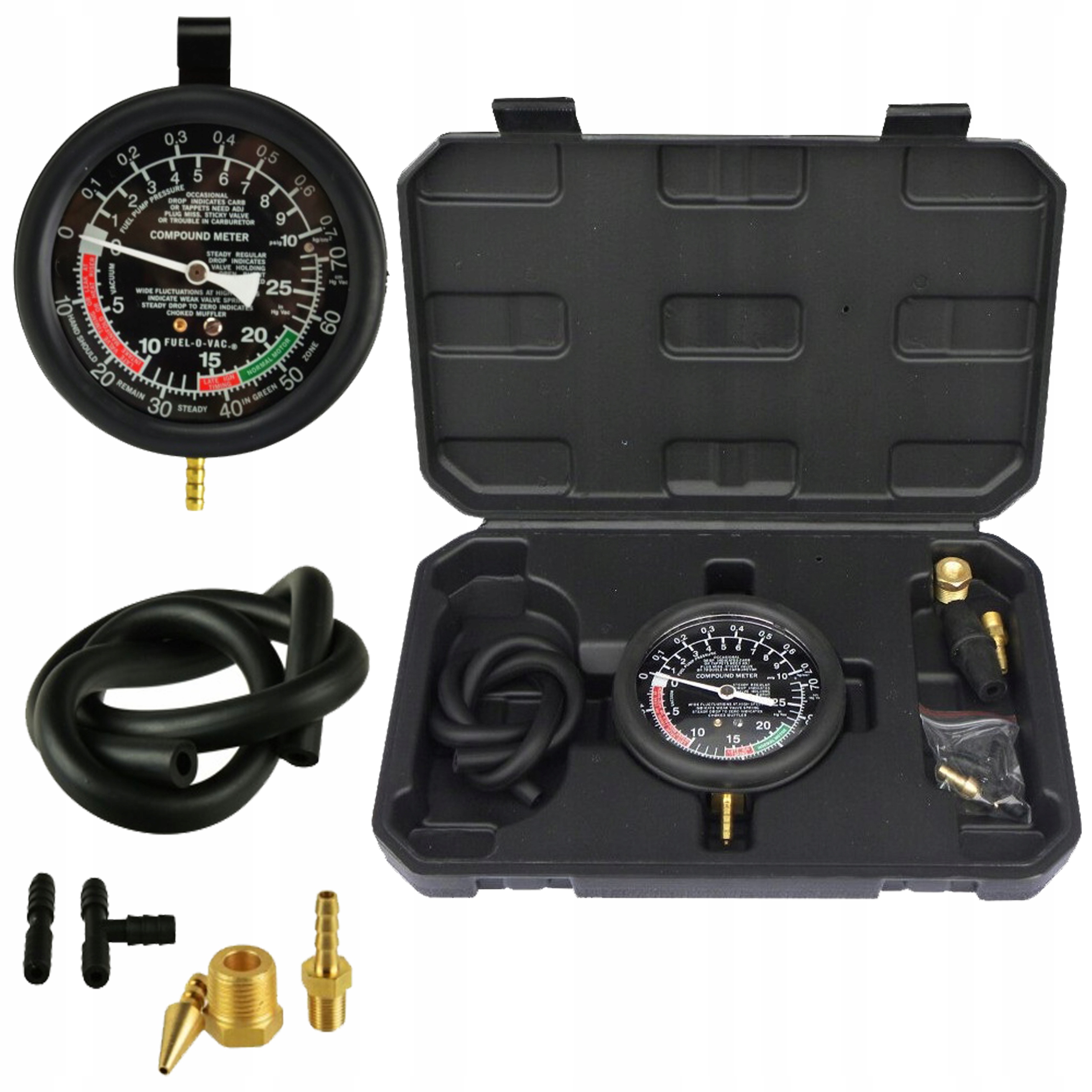 Тестер предназначен для проверки давления и вакуума в топливных системах. Подходит для проведения испытаний под давлением и вакуумом механических и электрических топливные насосы. Его также можно использовать для измерения тормозных систем и обнаружения утечек форсунок и топливных насосов. Кроме того, его можно использовать для сервоизмерений, вакуумных измерений в карбюраторных системах и впускных коллекторах, системах гидроусилителя руля, соленоидных клапанах, электровакуумных клапанах и диагностике клапанов.