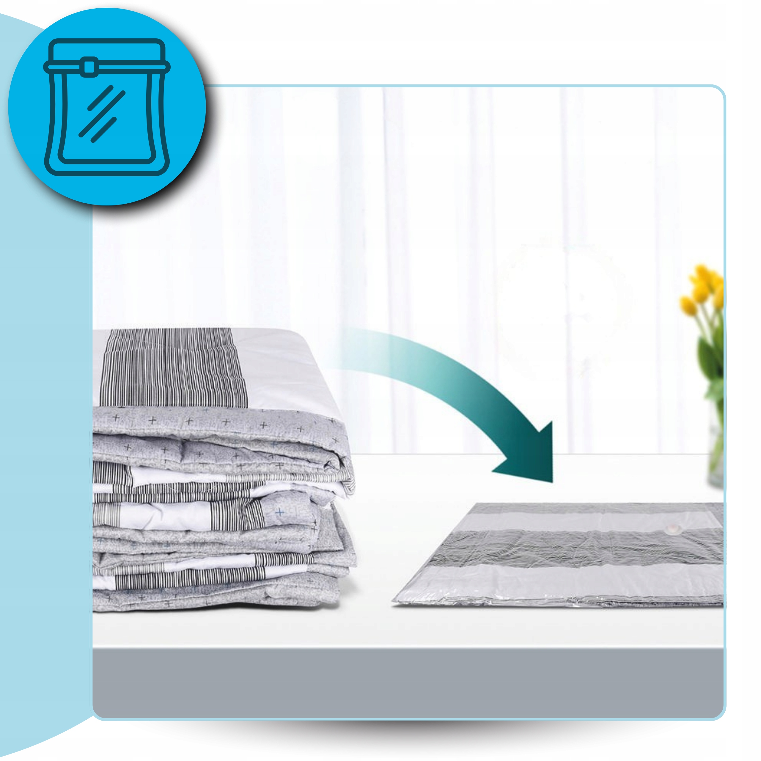 Ваш гардероб трещит по швам? Наши прочные вакуумные пакеты позволят вам сэкономить до 80% места, сжимая одежду до минимального размера. Они идеально подходят для хранения сезонной одежды, постельного белья или зимних курток, делая дом более аккуратным.