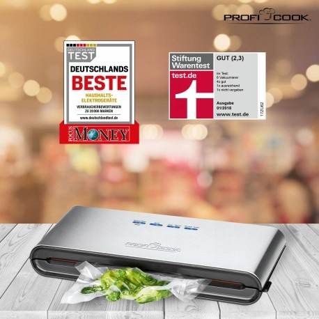 Надежное и полезное для здоровья хранение продуктов питания становится очень простым, если приобрести вакуумное упаковочное устройство ProfiCook PC-VK 1080. Продукты упаковываются таким способом. они долго останутся свежими, их можно готовить в воде, в микроволновой печи или в вакууме. Все это означает, что с помощью вакуумного упаковщика ProfiCook PC-VK 1080 легче сохранить витамины и полезные вещества в продуктах, а ваша семья сможет питаться здоровой пищей.