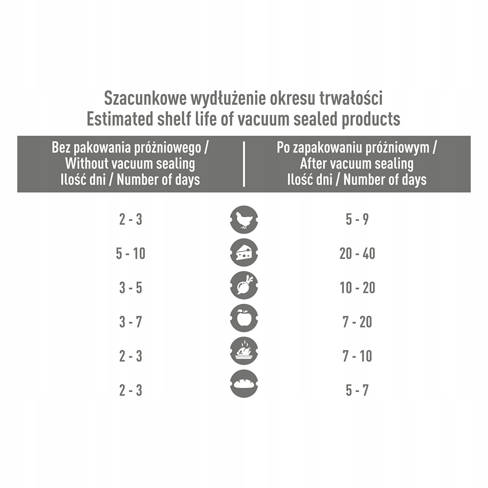 - Долгое время свежести ваших продуктов –Вакуумная упаковка позволяет продлить срок хранения пищевых продуктов, подавляет рост аэробных бактерий. и защищает от перепадов влажности и проникновения ароматов.