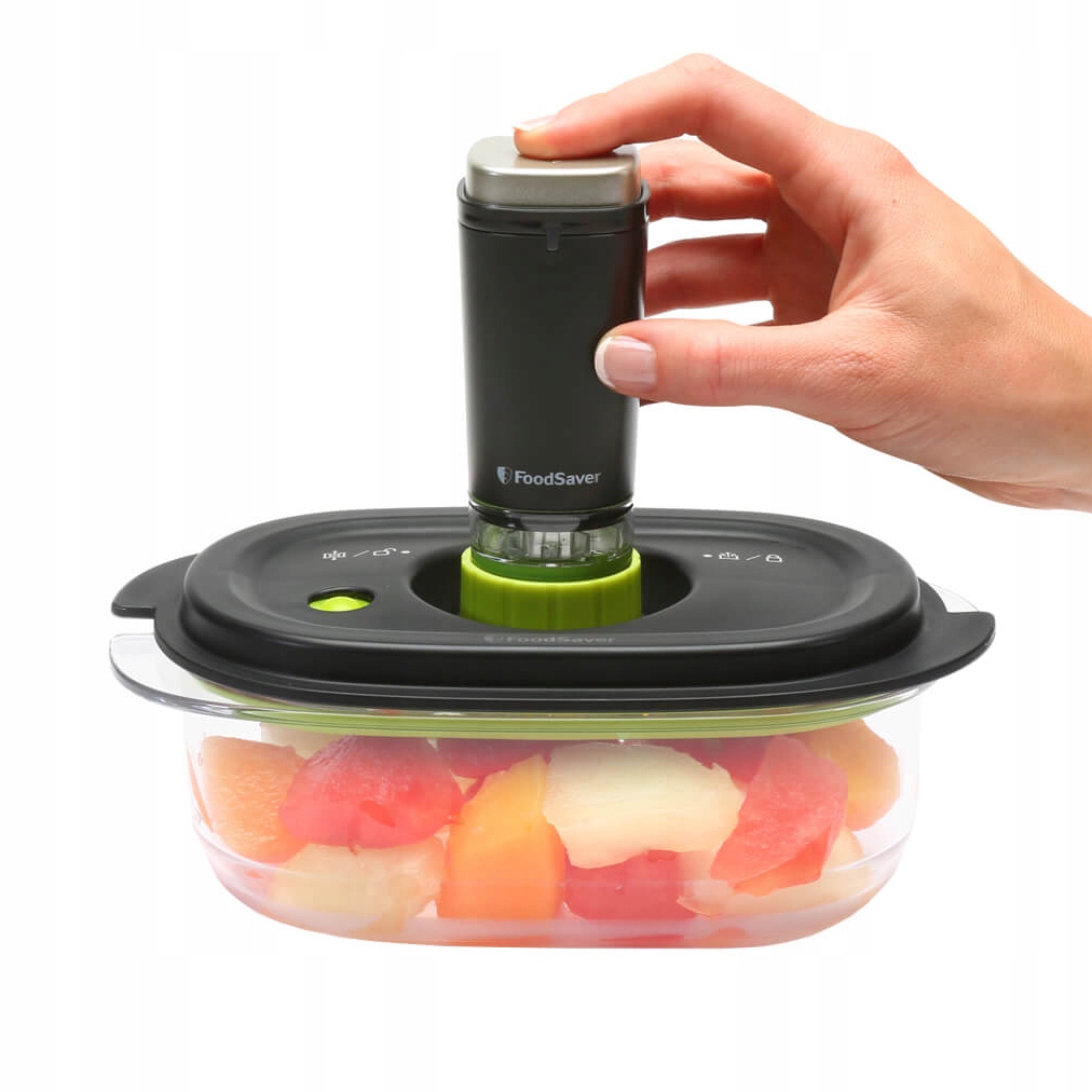 Контейнеры FoodSaver® FRESH 2.0 просты в использовании. Они оснащены удобным индикатором вакуума, который показывает, когда удаляется воздух. Просто поверните зеленую ручку на крышке в нужное положение, подключите ручной вакуумный упаковщик или вакуумный упаковщик и нажмите кнопку вакуумной упаковывания. Идеально подходит для приготовления еды, хранения остатков еды и свежих продуктов!