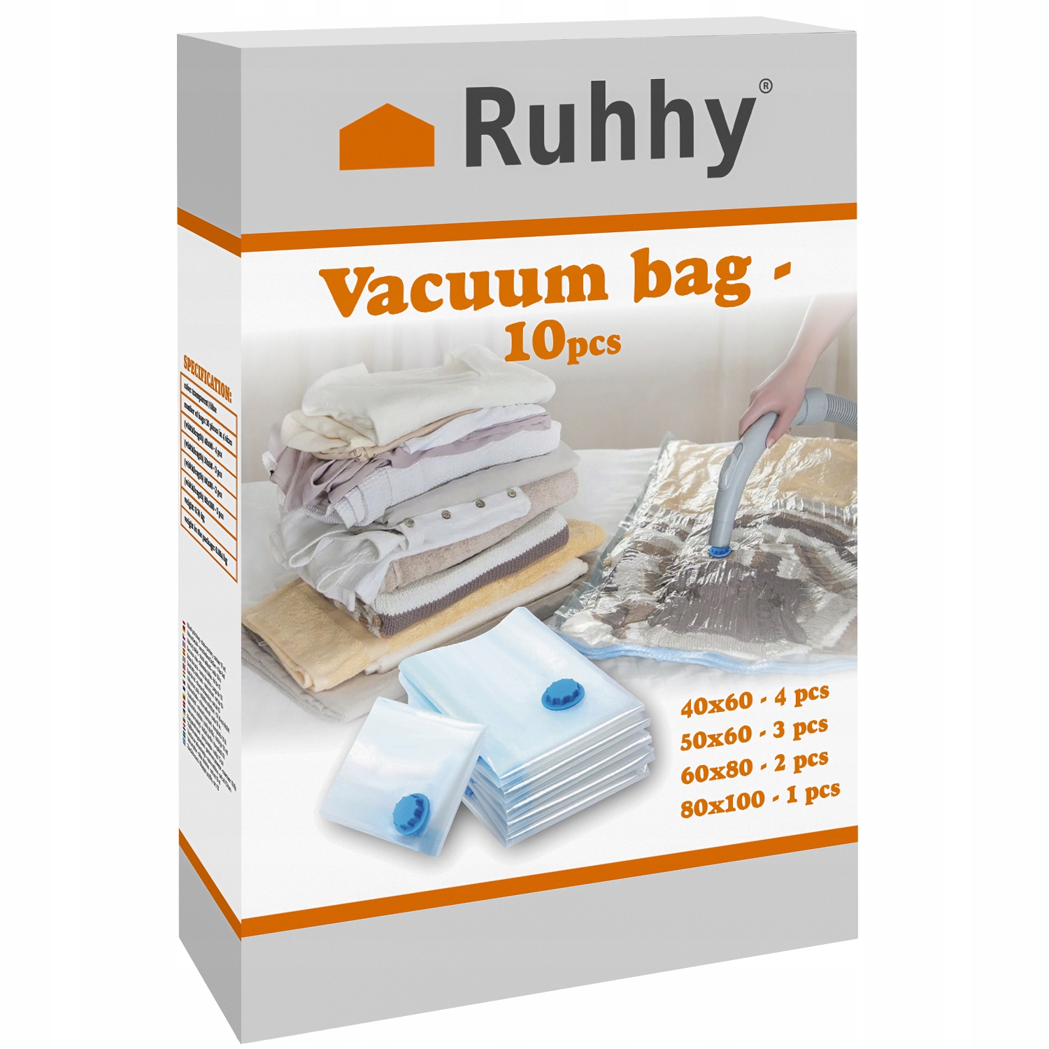 Набор из 10 вакуумных пакетов многоразового использования. Хранящиеся вещи прекрасно защищены от пыли, грязи, воды, влаги и моли. Одежда, хранящаяся без доступа воздуха, дольше выглядит новой. Чтобы высосать воздух, достаточно воспользоваться обычным пылесосом. Это позволит вам сэкономить много места.