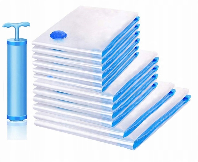ВАКУУМНІ МІШКИ ДЛЯ ОДЯГУ ПОСТІЛЬНОЇ БІЛИЗНИ ВАКУУМНИЙ МІШОК 4 РОЗМІРИ 12 ШТ + НАСОС