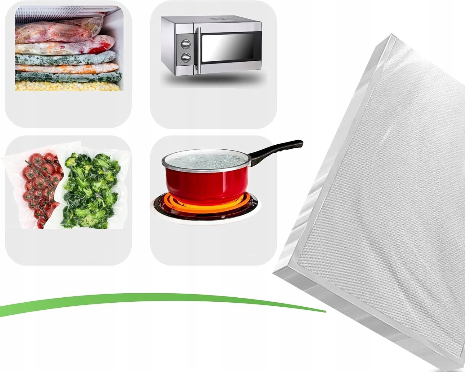 мешки идеально подходят как для дома, так и для профессионального использования. Это позволяет использовать многократное использование в автоматических сварщиках. Прочный и очень сильный, позволяет удобно использовать при всасывании герметического всасывания благодаря использованию сильных швов. Вы можете разморозить пищу, готовить и использовать в микроволновой печи