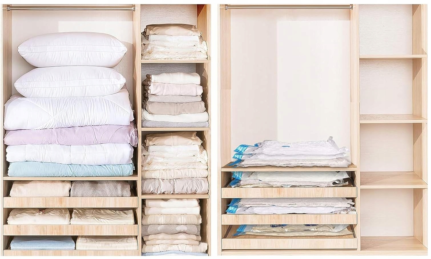 ✅ С помощью вакуумных пакетов вы можете упаковать то, что занимает много места и вы редко этим пользуетесь (простыни, свитера, одеяла), а остальное место оставить себе. Они также пригодятся в путешествии или переезде.