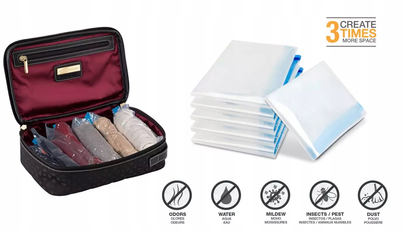 Ваши новые вакуумные пакеты герметичны и водонепроницаемы. Они обеспечивают защиту от плесени, моли, насекомых и запахов. При этом они экономят до 75 процентов места.