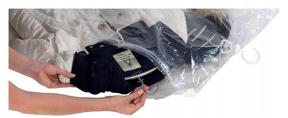 Вакуумные пакеты для одежды с вешалкой — чрезвычайно практичное решение для подвешивания закрытой одежды в помещении. гардероб. Стильные бесцветные чехлы позволяют сэкономить много места в гардеробе, до 75% объема. Воздух можно удалить обычным пылесосом, а застежка-молния защищает от влаги, неприятных запахов, моли, пыли и грязи.