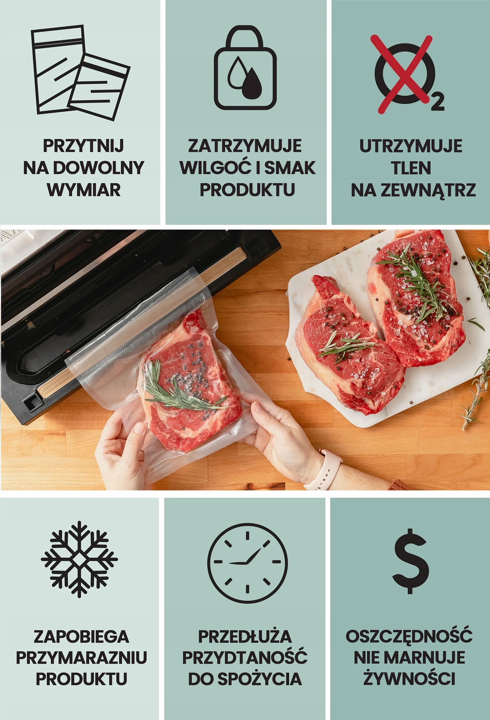 Почему стоит обратить внимание на качество вакуумных фольги? Мы предлагаем широкий выбор вакуумных мешков в различных размерах и пластиковых рукавах, адаптированных к индивидуальным потребностям. Наши чрезвычайно прочные вакуумные пакеты и вакуумные ролики устойчивы к разрыву, что делает их идеальными для упаковочных продуктов с острыми краями, такими как винты или мясо с костями