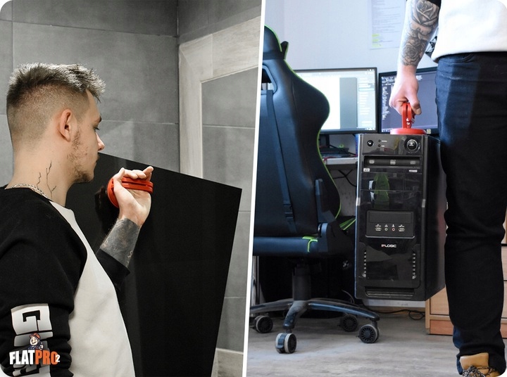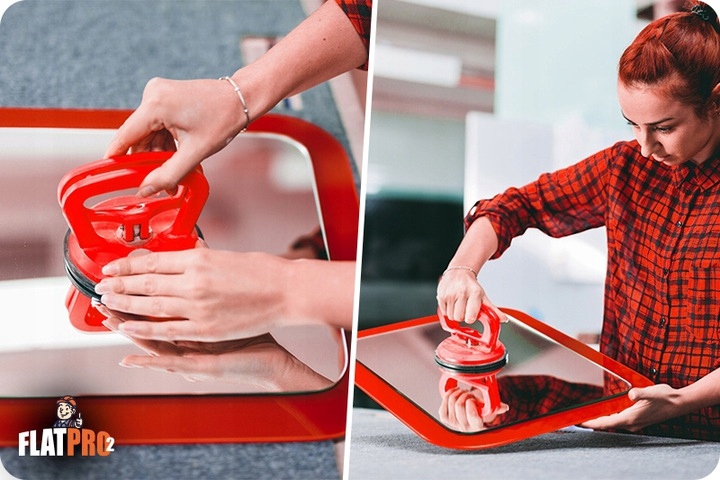 С помощью FlatPro2 Sucker вы можете легко и просто перемещать ВСЕ хрупкие и громоздкие предметы, например, стекло, плитку или терракоту. Достаточно, чтобы они имели гладкую поверхность.