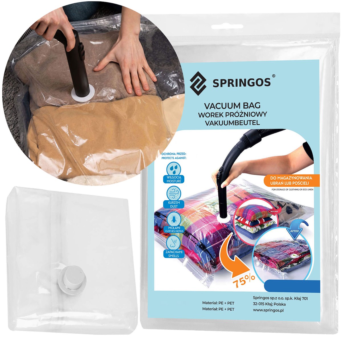 Дома важен каждый сэкономленный сантиметр пространства, точно так же в путешествии вакуумные пакеты Springos это просто великолепно. решение, благодаря которому можно сэкономить 75% пространства за счет выкачивания из них воздуха. Вы экономите место