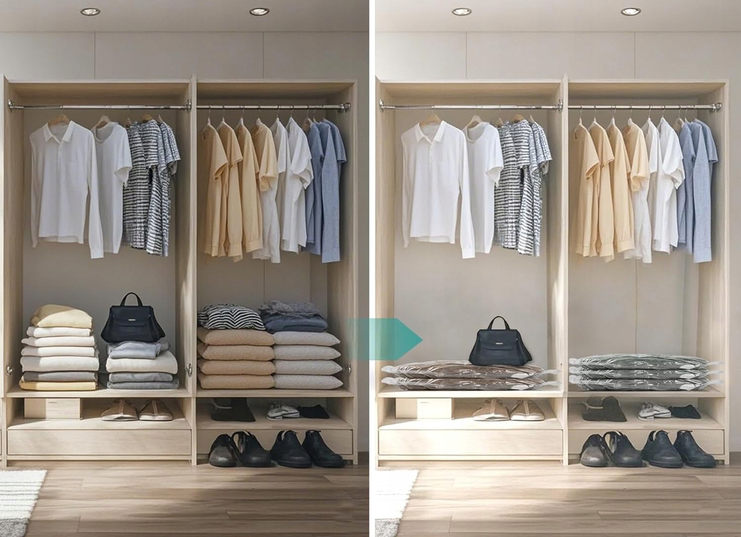 С нашими вакуумными мешками хранение Сезонная одежда становится проще, чем когда -либо