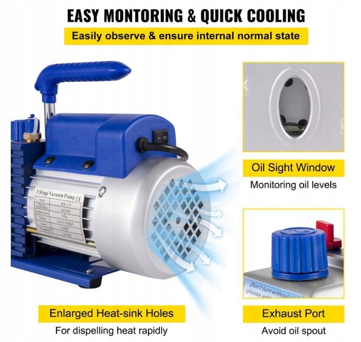 ✨Высококачественный вакуумный насос: FAD: 4 куб. фут/мин, одноступенчатый; Мощность: 1/3 л.с.; Максимальный вакуум: 5 Па.