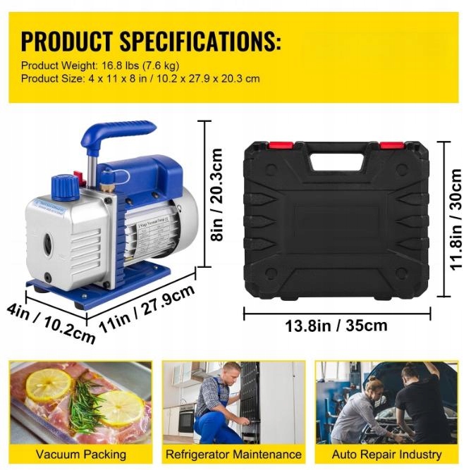 ➡ Вакуумный насос имеет корпус из литого под давлением алюминия и основание из композитной резины, что обеспечивает легкую и прочную конструкцию. Благодаря низкому уровню шума и встроенной тепловой защите насос работает тише и защищает себя от перегорания в случае застревания, что повышает эффективность работы.