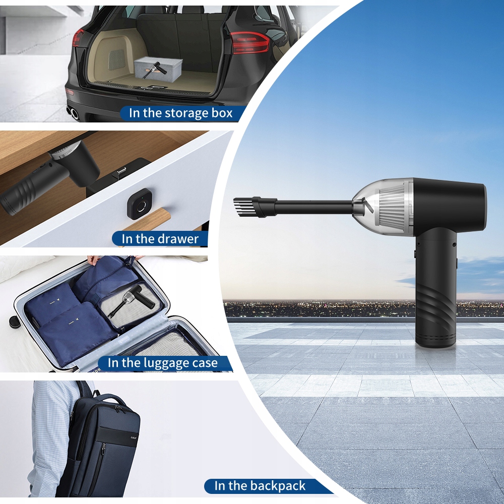 1. 3 в 1: Пылесос оснащен 6 сменными насадками. Он может очистить пыль компьютеров, клавиатур, офисов и салонов автомобилей. Кроме того, его можно использовать для раздувания угля для барбекю и наполнения плавательных кругов, надувных матрасов и вакуумных пакетов для хранения и т. д.