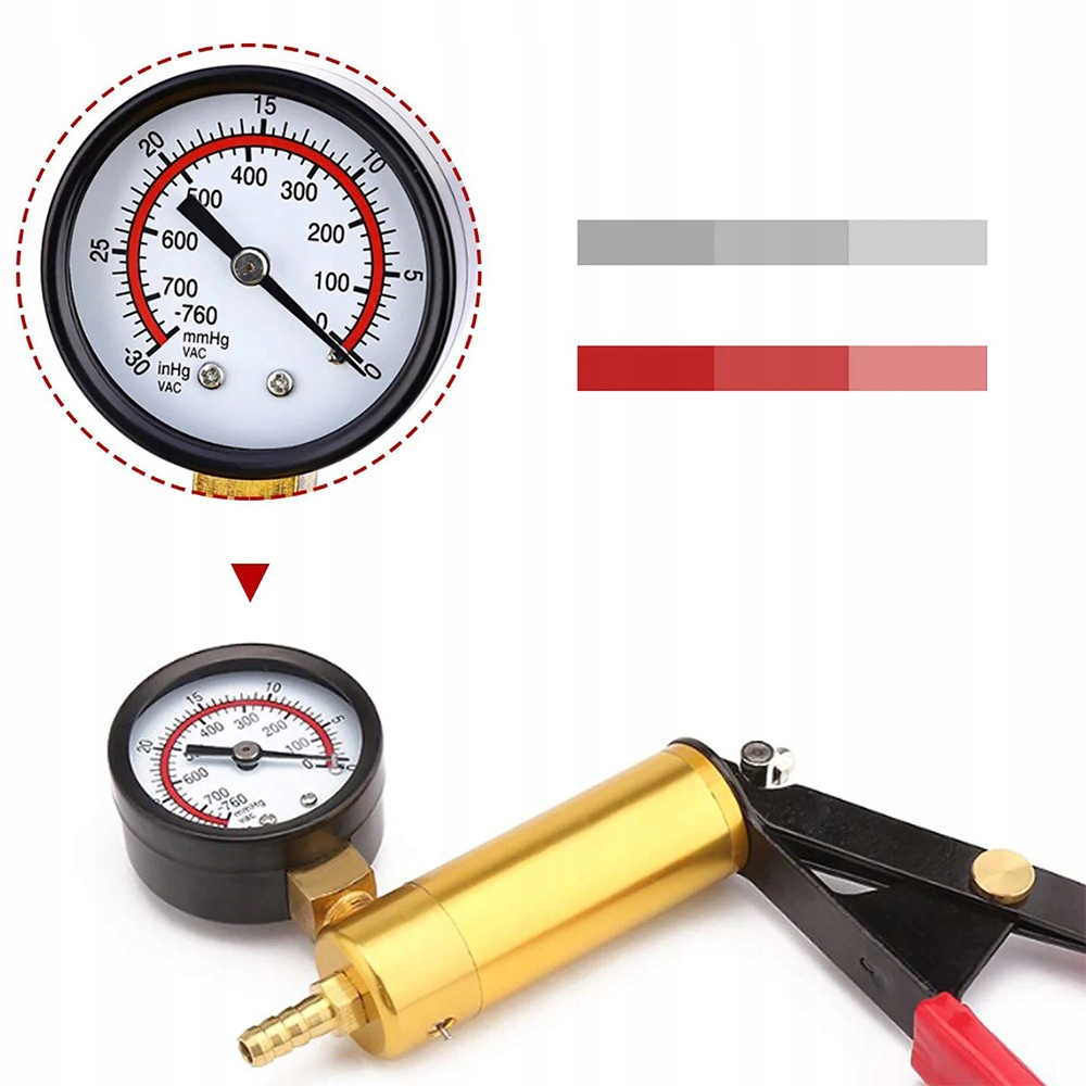 О: Он предназначен для проверки различных ключевых систем автомобиля (например, усилителей тормозов, топливных систем, вакуумных линий). Манометр 0–30 дюймов рт. ст. / 0–760 мм рт. ст. обеспечивает точные показания вакуума для диагностики утечек или проблем с производительностью.