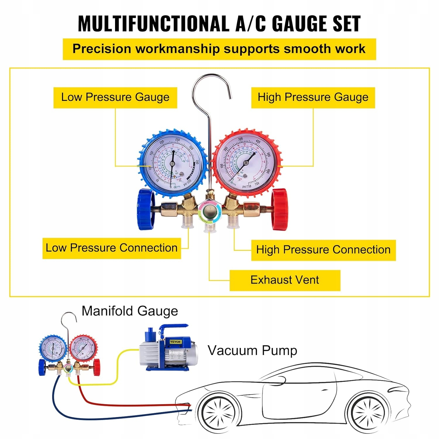 Точные манометры коллектора: Холодильная установка оснащена манометрами коллектора. Двойные манометры высокого качества позволяют вам в любой момент проверить фактическое рабочее давление, что упрощает обслуживание ваших систем. Кроме того, большое смотровое стекло облегчает наблюдение за потоком хладагента.