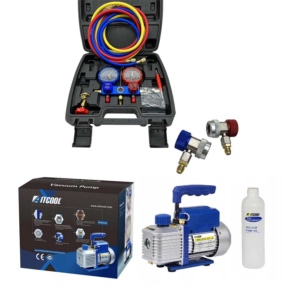 Манометры R134a + 1 ступень 51л/мин Aitcool VP115N с маслом в комплекте