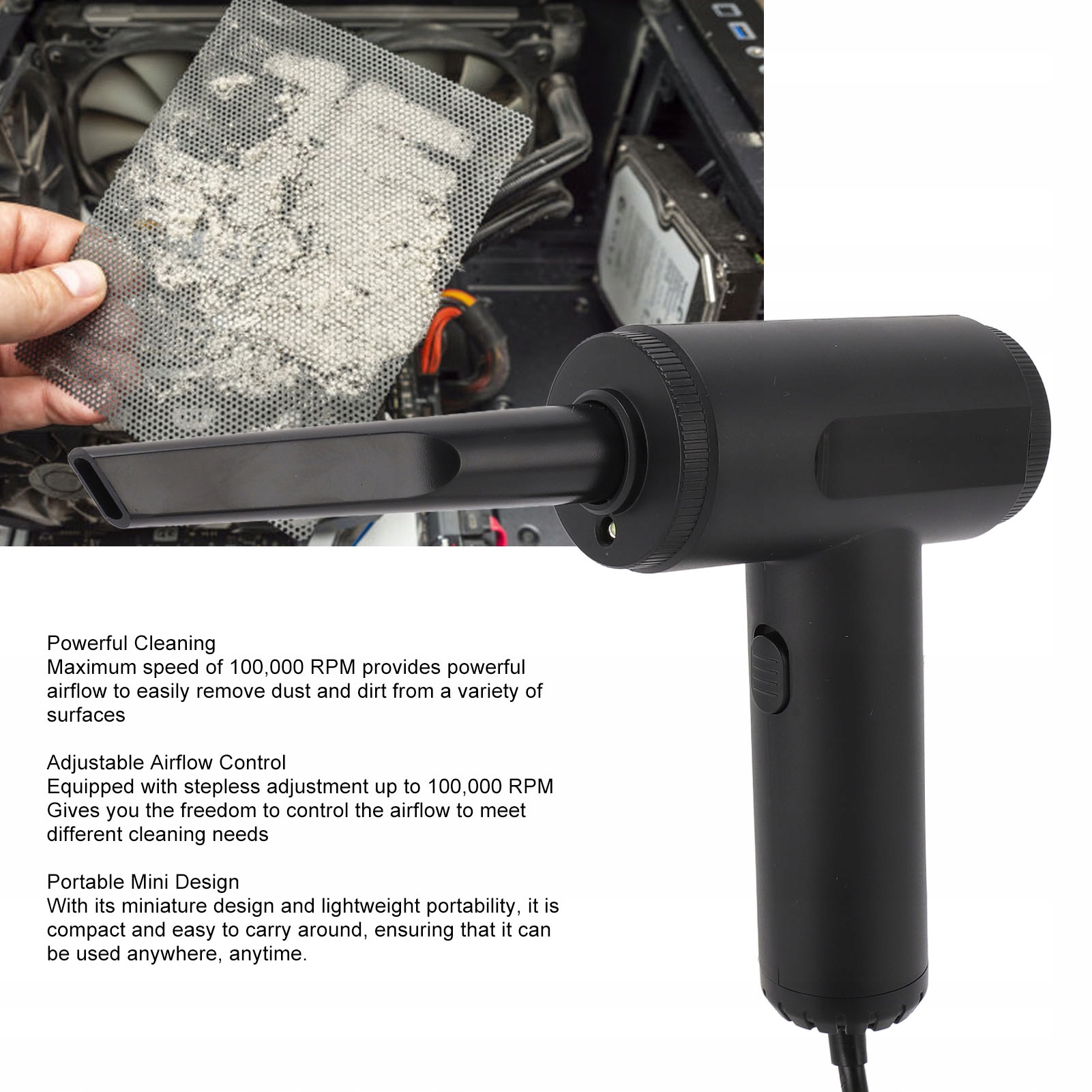 1. Сильная очистка: благодаря максимальной скорости 100 000 об/мин новый пылесос для сжатого воздуха обеспечивает сильное дыхание воздуха, которое выдерживает пыль и грязь с различных поверхностей. Регулируемый управление потоком воздуха: оснащена беспроблемной регулировкой до 100 000 об/мин, дает вам возможность управлять воздушным потоком в зависимости от потребностей, связанных с очисткой. Портативная мини -конструкция: благодаря миниатюрной конструкции и небольшой переносимости, проводной, электрический пылесос является компактным и на хранении, что делает его идеальным для очистки дома или офиса. Широко используется: в дополнение к очистке клавиатур и электронных устройств, это также подходит для душивания пыли от интерьеров автомобилей, расщелищных чисел мебели, столов и т. Д., Удовлетворяет повседневную жизнь и различные потребности чистки на работе. Энергетическая эффективность и экономия: используйте мощность чистки Pena Pena Pena электрической воздуходувки. Экологически чистый и энергичный, вам не нужно часто покупать один чистящий продукт